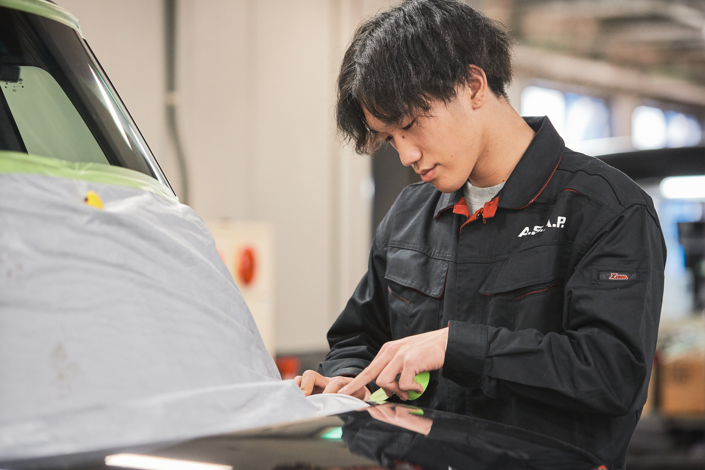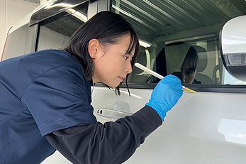 仕入れた自動車の内装・外装をキレイにするお仕事です。ネクステージの店舗に並んでいる自動車をいつでもお客様が気持ちよくご覧になっていただけるようサポートしています。
